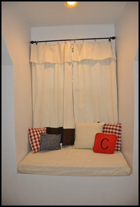 The landing… This is a work in progress and probably will be for a while. That shelving unit will have doors put on to it to make it a linen closet. Can you believe I don't have one?? The window has since had a cushion and curtains added to it. They aren’t the curtains I want forever but I needed something there for now.